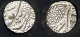 | Description / विवरण | Descrpn./Obv In the centre, a chhatra with Sa and Ta in Gurumukhi script on the left and right of its shaft; traces of the Persian legend seen on the obverse of the bigger Nanakshahi coins of Amritsar mint are also seen. Descrpn./Rev Big peepal leaf and traces of the Persian legend seen on the reverse of the bigger Nanakshahi coins of Amiritsar mint - Shri Amritsarjiv zarb [VS Year] Takht maimanat julus manus Akal Bakht. Especially traces of alif of Akal and te of Takht and maimanat are seen |