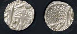| Description / विवरण | Descrpn./Obv In the centre, a chhatra with Sa and Ta in Gurumukhi script on the left and right of its shaft; traces of the Persian legend seen on the obverse of the bigger Nanakshahi coins of Amritsar mint are also seen. Descrpn./Rev Big peepal leaf and traces of the Persian legend seen on the reverse of the bigger Nanakshahi coins of Amiritsar mint - Shri Amritsarjiv zarb [VS Year] Takht maimanat julus manus Akal Bakht. Especially traces of alif of Akal and te of Takht and maimanat are seen |