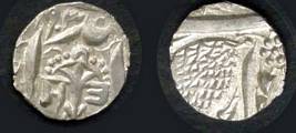 | Description / विवरण | Descrpn./Obv In the centre, a chhatra with Sa and Ta in Gurumukhi script on the left and right of its shaft; traces of the Persian legend seen on the obverse of the bigger Nanakshahi coins of Amritsar mint are also seen. Descrpn./Rev Big peepal leaf and traces of the Persian legend seen on the reverse of the bigger Nanakshahi coins of Amiritsar mint - Shri Amritsarjiv zarb [VS Year] Takht maimanat julus manus Akal Bakht. Especially traces of alif of Akal and te of Takht and maimanat are seen |