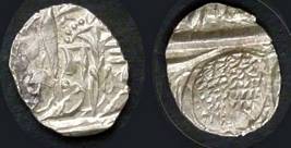 | Description / विवरण | Descrpn./Obv In the centre, a chhatra with Sa and Ta in Gurumukhi script on the left and right of its shaft; traces of the Persian legend seen on the obverse of the bigger Nanakshahi coins of Amritsar mint are also seen. Descrpn./Rev Big peepal leaf and traces of the Persian legend seen on the reverse of the bigger Nanakshahi coins of Amiritsar mint - Shri Amritsarjiv zarb [VS Year] Takht maimanat julus manus Akal Bakht. Especially traces of alif of Akal and te of Takht and maimanat are seen |