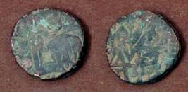 | Description / विवरण | Descrpn./Obv Recumbent bull facing left, wearing jhula (saddle cloth). Above, legend in Sarada script Sri Samantadeva (in cursive letters, mostly truncated and seen partially or off the flan). Descrpn./Rev Rider with lance on caparisoned horse facing right. |