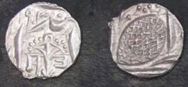 | Description / विवरण | Descrpn./Obv In the centre, a chhatra with Sa and Ta in Gurumukhi script on the left and right of its shaft; traces of the Persian legend seen on the obverse of the bigger Nanakshahi coins of Amritsar mint are also seen. Descrpn./Rev Big peepal leaf and traces of the Persian legend seen on the reverse of the bigger Nanakshahi coins of Amiritsar mint - Shri Amritsarjiv zarb [VS Year] Takht maimanat julus manus Akal Bakht. Especially traces of alif of Akal and te of Takht and maimanat are seen |