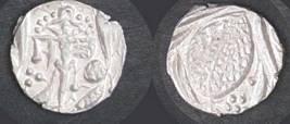 | Description / विवरण | Descrpn./Obv In the centre, a chhatra with Sa and Ta in Gurumukhi script on the left and right of its shaft; traces of the Persian legend seen on the obverse of the bigger Nanakshahi coins of Amritsar mint are also seen. Descrpn./Rev Big peepal leaf and traces of the Persian legend seen on the reverse of the bigger Nanakshahi coins of Amiritsar mint - Shri Amritsarjiv zarb [VS Year] Takht maimanat julus manus Akal Bakht. Especially traces of alif of Akal and te of Takht and maimanat are seen |