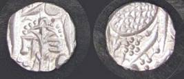 | Description / विवरण | Descrpn./Obv In the centre, a chhatra with Sa and Ta in Gurumukhi script on the left and right of its shaft; traces of the Persian legend seen on the obverse of the bigger Nanakshahi coins of Amritsar mint are also seen. Descrpn./Rev Big peepal leaf and traces of the Persian legend seen on the reverse of the bigger Nanakshahi coins of Amiritsar mint - Shri Amritsarjiv zarb [VS Year] Takht maimanat julus manus Akal Bakht. Especially traces of alif of Akal and te of Takht and maimanat are seen |