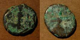 | Description / विवरण | Descrpn./Obv Stylised seated Goddess facing; Sharada legend, Ha (on l.) rsha ra (on r.). Descrpn./Rev Stylised standing king design; Sharada legend, jadeva (on r.) |