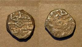 | Description / विवरण | Descrpn./Obv Part of as-sultan al-azam ...Shah, diamond shaped knot in centre. Descrpn./Rev Part of zarb Kashmir and date in Arabic words |