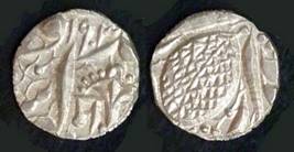 | Description / विवरण | Descrpn./Obv In the centre, a chhatra with Sa and Ta in Gurumukhi script on the left and right of its shaft; traces of the Persian legend seen on the obverse of the bigger Nanakshahi coins of Amritsar mint are also seen. Descrpn./Rev Big peepal leaf and traces of the Persian legend seen on the reverse of the bigger Nanakshahi coins of Amiritsar mint - Shri Amritsarjiv zarb [VS Year] Takht maimanat julus manus Akal Bakht. Especially traces of alif of Akal and te of Takht and maimanat are seen |