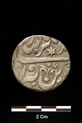 | Description / विवरण | Obverse Illegible at the top. Din qurir below. Reverse Ma nus, maimnat, Sana 39 mace. Jalus. |