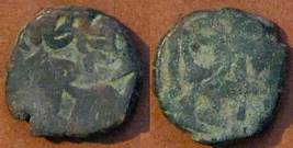 | Description / विवरण | Descrpn./Obv Recumbent bull facing left, wearing jhula (saddle cloth). Above, legend in Sarada script Sri Samantadeva (in cursive letters, mostly truncated and seen partially or off the flan). Descrpn./Rev Rider with lance on caparisoned horse facing right. |