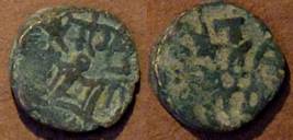 | Description / विवरण | Descrpn./Obv Recumbent bull facing left, wearing jhula (saddle cloth). Above, legend in Sarada script Sri Samantadeva (in cursive letters, mostly truncated and seen partially or off the flan). Descrpn./Rev Rider with lance on caparisoned horse facing right. |