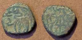 | Description / विवरण | Descrpn./Obv Recumbent bull facing left, wearing jhula (saddle cloth). Above, legend in Sarada script Sri Samantadeva (in cursive letters, mostly truncated and seen partially or off the flan). Descrpn./Rev Rider with lance on caparisoned horse facing right. |
