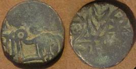 | Description / विवरण | Descrpn./Obv Recumbent bull facing left, wearing jhula (saddle cloth). Above, legend in Sarada script Sri Samantadeva (in cursive letters, mostly truncated and seen partially or off the flan). Descrpn./Rev Rider with lance on caparisoned horse facing right. |