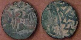 | Description / विवरण | Descrpn./Obv Recumbent bull facing left, wearing jhula (saddle cloth). Above, legend in Sarada script Sri Samantadeva (in cursive letters, mostly truncated and seen partially or off the flan). Descrpn./Rev Rider with lance on caparisoned horse facing right. |