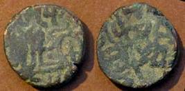 | Description / विवरण | Descrpn./Obv Recumbent bull facing left, wearing jhula (saddle cloth). Above, legend in Sarada script Sri Samantadeva (in cursive letters, mostly truncated and seen partially or off the flan). Descrpn./Rev Rider with lance on caparisoned horse facing right. |