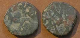| Description / विवरण | Descrpn./Obv Recumbent bull facing left, wearing jhula (saddle cloth). Above, legend in Sarada script Sri Samantadeva (in cursive letters, mostly truncated and seen partially or off the flan). Descrpn./Rev Rider with lance on caparisoned horse facing right. |