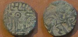 | Description / विवरण | Descrpn./Obv Recumbent bull facing left, wearing jhula (saddle cloth). Above, legend in Sarada script Sri Samantadeva (in cursive letters, mostly truncated and seen partially or off the flan). Descrpn./Rev Rider with lance on caparisoned horse facing right. |