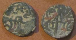 | Description / विवरण | Descrpn./Obv Recumbent bull facing left, wearing jhula (saddle cloth). Above, legend in Sarada script Sri Samantadeva (in cursive letters, mostly truncated and seen partially or off the flan). Descrpn./Rev Rider with lance on caparisoned horse facing right. |