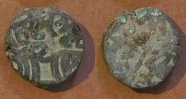 | Description / विवरण | Descrpn./Obv Recumbent bull facing left, wearing jhula (saddle cloth). Above, legend in Sarada script Sri Samantadeva (in cursive letters, mostly truncated and seen partially or off the flan). Descrpn./Rev Rider with lance on caparisoned horse facing right. |