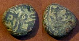 | Description / विवरण | Descrpn./Obv Recumbent bull facing left, wearing jhula (saddle cloth). Above, legend in Sarada script Sri Samantadeva (in cursive letters, mostly truncated and seen partially or off the flan). Descrpn./Rev Rider with lance on caparisoned horse facing right. |