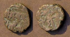 | Description / विवरण | Descrpn./Obv Recumbent bull facing left, wearing jhula (saddle cloth). Above, legend in Sarada script Sri Samantadeva (in cursive letters, mostly truncated and seen partially or off the flan). Descrpn./Rev Rider with lance on caparisoned horse facing right. |