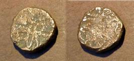 | Description / विवरण | Descrpn./Obv Recumbent bull facing left, wearing jhula (saddle cloth). Above, legend in Sarada script Sri Samantadeva (in cursive letters, mostly truncated and seen partially or off the flan). Descrpn./Rev Rider with lance on caparisoned horse facing right. |