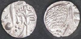 | Description / विवरण | Descrpn./Obv In the centre, a chhatra with Sa and Ta in Gurumukhi script on the left and right of its shaft; traces of the Persian legend seen on the obverse of the bigger Nanakshahi coins of Amritsar mint are also seen. Descrpn./Rev Big peepal leaf and traces of the Persian legend seen on the reverse of the bigger Nanakshahi coins of Amiritsar mint - Shri Amritsarjiv zarb [VS Year] Takht maimanat julus manus Akal Bakht. Especially traces of alif of Akal and te of Takht and maimanat are seen |