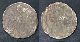 | Description / विवरण | Descrpn./Obv Recumbent bull facing left, wearing jhula (saddle cloth), with trisula (trident) symbol on rump. Above, legend in Sarada script Sri Samantadeva . Descrpn./Rev Rider with lance on caparisoned horse facing right. On left, Sarada letter bhi and on right, Sarada letter ta |