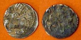 | Description / विवरण | Descrpn./Obv Recumbent bull facing left, wearing jhula (saddle cloth), with trisula (trident) symbol on rump. Above, legend in Sarada script Sri Samantadeva . Descrpn./Rev Rider with lance on caparisoned horse facing right. On left, Sarada letter bhi and on right, Sarada letter ta |