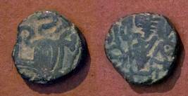 | Description / विवरण | Descrpn./Obv Recumbent bull facing left, wearing jhula (saddle cloth). Above, legend in Sarada script Sri Samantadeva (in cursive letters, mostly truncated and seen partially or off the flan). Descrpn./Rev Rider with lance on caparisoned horse facing right. |