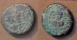 | Description / विवरण | Descrpn./Obv Stylised seated Goddess facing; Sharada legend, Ha (on l.) rsha ra (on r.). Descrpn./Rev Stylised standing king design; Sharada legend, jadeva (on r.) |