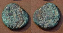 | Description / विवरण | Descrpn./Obv Stylised seated Goddess facing; Sharada legend, Ha (on l.) rsha ra (on r.). Descrpn./Rev Stylised standing king design; Sharada legend, jadeva (on r.) |