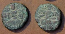 | Description / विवरण | Descrpn./Obv Stylised seated Goddess facing; Sharada legend, Sa (on l.) ngrama ra (on r.). Descrpn./Rev Stylised standing king design; Sharada legend, jadeva (on r.) |