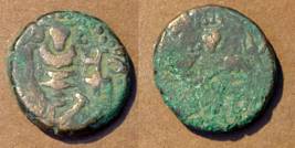 | Description / विवरण | Descrpn./Obv Stylised seated Goddess facing; Sharada legend, Su (on l.) ssala (on r.). Descrpn./Rev Stylised standing king design; Sharada legend, deva (on r.) |