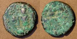 | Description / विवरण | Descrpn./Obv Stylised seated Goddess facing; Sharada legend, A (on l.) nanta ra (on r.). Descrpn./Rev Stylised standing king design; Sharada legend, jadeva (on r.) |