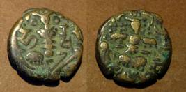 | Description / विवरण | Descrpn./Obv Stylised seated Goddess facing; Sharada legend, Ha (on l.) rsha ra (on r.). Descrpn./Rev Stylised standing king design; Sharada legend, jadeva (on r.) |