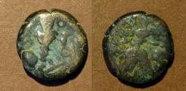 | Description / विवरण | Descrpn./Obv Stylised seated Goddess facing; Sharada legend, Ha (on l.) rsha ra (on r.). Descrpn./Rev Stylised standing king design; Sharada legend, jadeva (on r.) |