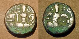 | Description / विवरण | Descrpn./Obv Stylised seated Goddess facing; Sharada legend, Sri (on l.) Didda (on r.). Descrpn./Rev Stylised standing king design; Sharada legend, devya (on r.) |