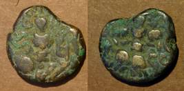 | Description / विवरण | Descrpn./Obv Stylised seated Goddess facing; Sharada legend, Ha (on l.) rsha ra (on r.). Descrpn./Rev Stylised standing king design; Sharada legend, jadeva (on r.) |