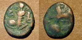 | Description / विवरण | Descrpn./Obv Stylised seated Goddess facing; Sharada legend, Ha (on l.) rsha ra (on r.). Descrpn./Rev Stylised standing king design; Sharada legend, jadeva (on r.) |
