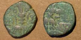 | Description / विवरण | Descrpn./Obv Stylised seated Goddess facing; Sharada legend, Sri (on l.) Didda (on r.). Descrpn./Rev Stylised standing king design; Sharada legend, devya (on r.) |