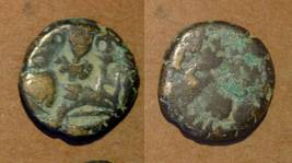 | Description / विवरण | Descrpn./Obv Stylised seated Goddess facing; Sharada legend, Ha (on l.) rsha ra (on r.). Descrpn./Rev Stylised standing king design; Sharada legend, jadeva (on r.) |