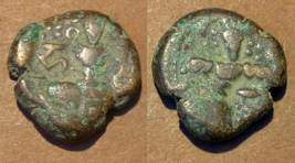 | Description / विवरण | Descrpn./Obv Stylised seated Goddess facing; Sharada legend, Ha (on l.) rsha ra (on r.). Descrpn./Rev Stylised standing king design; Sharada legend, jadeva (on r.) |