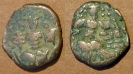 | Description / विवरण | Descrpn./Obv Stylised seated Goddess facing; Sharada legend, Ka (on l.) lasa ra (on r.). Descrpn./Rev Stylised standing king design; Sharada legend, jadeva (on r.) |