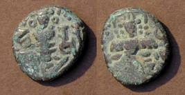 | Description / विवरण | Descrpn./Obv Stylised seated Goddess facing; Sharada legend, Ha (on l.) rsha ra (on r.). Descrpn./Rev Stylised standing king design; Sharada legend, jadeva (on r.) |
