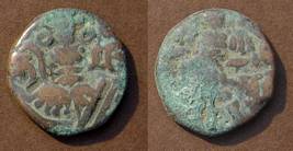 | Description / विवरण | Descrpn./Obv Stylised seated Goddess facing; Sharada legend, Sri (on l.) Para (on r.). Descrpn./Rev Stylised standing king design; Sharada legend, Nu- (on r.) |
