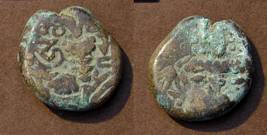| Description / विवरण | Descrpn./Obv Stylised seated Goddess facing; Sharada legend, Ha (on l.) rsha ra (on r.). Descrpn./Rev Stylised standing king design; Sharada legend, jadeva (on r.) |