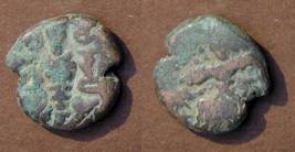 | Description / विवरण | Descrpn./Obv Stylised seated Goddess facing; Sharada legend, Ha (on l.) rsha ra (on r.). Descrpn./Rev Stylised standing king design; Sharada legend, jadeva (on r.) |