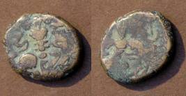 | Description / विवरण | Descrpn./Obv Stylised seated Goddess facing; Sharada legend, Ha (on l.) rsha ra (on r.). Descrpn./Rev Stylised standing king design; Sharada legend, jadeva (on r.) |