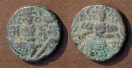 | Description / विवरण | Descrpn./Obv Stylised seated Goddess facing; Sharada legend, Sa (on l.) ngrama ra (on r.). Descrpn./Rev Stylised standing king design; Sharada legend, jadeva (on r.) |