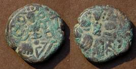 | Description / विवरण | Descrpn./Obv Stylised seated Goddess facing; Sharada legend, Ha (on l.) rsha ra (on r.). Descrpn./Rev Stylised standing king design; Sharada legend, jadeva (on r.) |